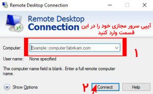 پس از کلیک بر روی برنامه remote desktop و باز شدن آن پنجره ای مانند پنجره زیر مشاهده میکنیم.
